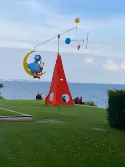 Costumed visitors—witches in Scandinavian wool, vampires with Nordic runes—wander fog-shrouded paths. Pumpkin lanterns flicker amid Calder's mobiles, spinning like harvest omens. In the café, mulled gløgg laced with akvavit warms chilled bones, paired with smørrebrød topped by edible "eyeballs."