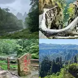 📸- Zhangjiajie National Forest Park: divided into Huangshizhai, Jinbianxi, Yuanjiajie, Tianzi, and Suoxiyu areas. Among them, Yuanjiajie is the filming location of 'Hallelujah Mountain' in the movie 'Avatar', and the Ecstasy Terrace is the best place for the observation deck, where you can see the world's largest mountain with a vertical difference of 357m across the two mountains. Bridge. On the other hand, Yangjiajie is mainly characterized by its natural scenery and natural beauty, and is famous for being 'dangerous' due to its high mountains and narrow roads.