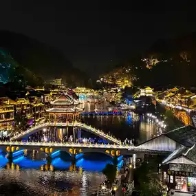 The town is lively yet relaxed, with local markets, snack stalls, and craft shops offering an authentic taste of Fenghuang culture. Traditional performances and local customs add to the immersive experience, giving visitors a true sense of history. Photography enthusiasts will find endless inspiration in the colorful buildings, ancient architecture, and scenic river views. Fenghuang Ancient Town is ideal for travelers seeking a mix of culture, history, and natural beauty. It provides a peaceful yet vibrant escape in Hunan Province that lingers in your memory long after you leave.
