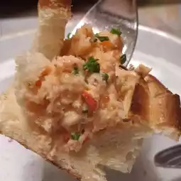 The crispy bread contains fresh lobster meat, which has a strong seafood flavor.