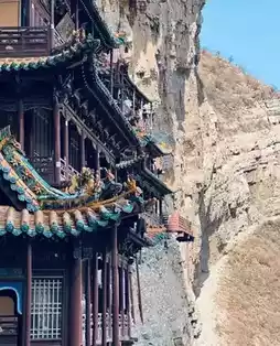 ⛰️Hengshan Temple Group: Hanging Temple: Located between the cliffs of Cuiping Peak, the second main peak of Hengshan