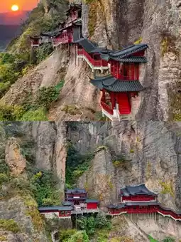 As soon as you arrive at Daciyan, you'll be greeted by stunning mountains and rivers⛰️. Amidst the swirling mists, the Hanging Temple appears and disappears, a truly breathtaking sight. This "Hanging Temple of Jiangnan" is so amazing, it's like something out of a fantasy drama!