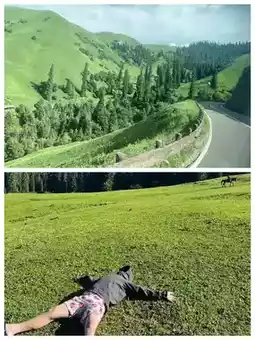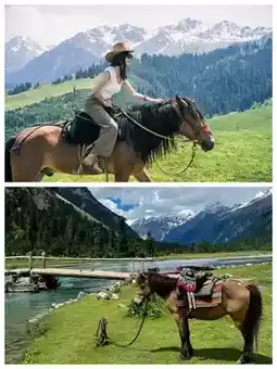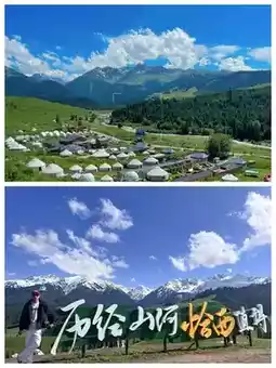 4️⃣ Qiongkushitai - After a three-hour winding mountain road, we arrived at this undeveloped Kazakh village 'Qiongkushitai'. Riding horses through the back mountain trails, the scenery along the way is breathtaking, with distant snow mountains, grasslands, swings, and log cabins forming a touching picture. If time permits, do not miss the romantic sunset here🌇.