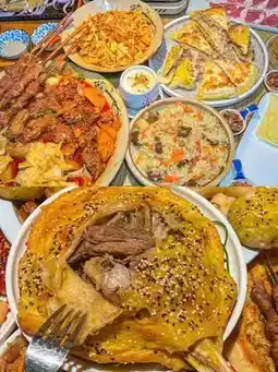Xinjiang baked buns, grilled lamb skewers, noodles, big plate chicken, pilaf, yogurt
