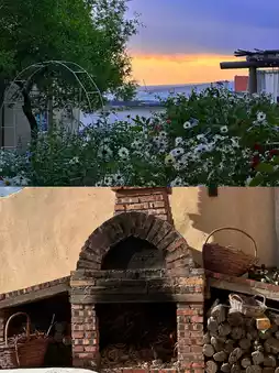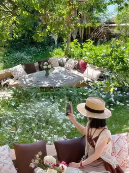 Sitting in the yard, you can see a large lavender field.