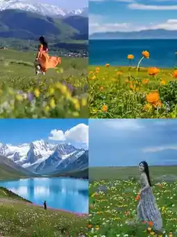 🌿Sayram Lake: In April, the ice and snow on Sayram Lake melt, and the ice crystals covering the shoreline create a unique ice-pushing spectacle. New buds sprout along the shore, the grasslands are lush green, and wildflowers bloom freely, forming a breathtaking picture with the azure lake and graceful swans.