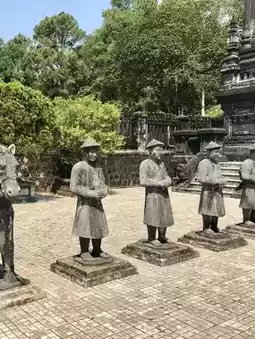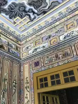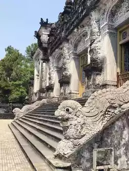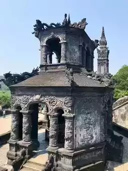 The Khai Dinh Mausoleum incorporates a Baroque style and is made of expensive reinforced concrete imported from France.
