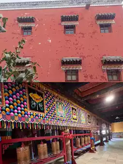 Built in the seventh year of Qianlong (1742), it is the smallest in scale and has four layers of temples. The chanting hall is a typical Tibetan-style two-story loft. The big red wall is my favorite, and it looks good in photos. The three Buddhas enshrined in the main hall, the caisson craftsmanship is superb.