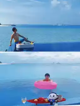 This place is especially suitable for a family or a group of friends to travel together. Choose a water villa with two rooms, equipped with all-white snorkeling equipment in the room. You can have a party in the balcony pool together or play in the sea together by jumping from the handrail on the side.