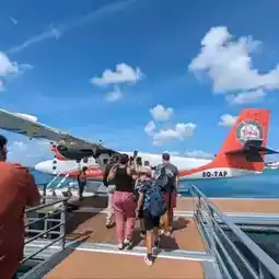 As I prepared for my first seaplane adventure, a sense of anticipation gradually grew within me. The air was filled with excitement and curiosity as I imagined soaring through the sky, overlooking breathtaking views. Similar to taking public transportation, there were other passengers heading to different islands, and we would accordingly disembark the plane. This unique mode of transportation added a touch of wonder to my travel experience, and I eagerly looked forward to the extraordinary destinations awaiting me on this journey. The entire trip lasted nearly an hour, and we were warmly welcomed by the island staff once we landed.