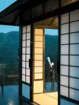In the mountains, drink hot tea and listen to the birds singing in the forest outside the window