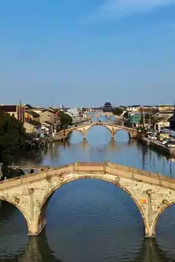 Spanning just 400 meters of the river, these three bridges are built in succession. Although similar in design, they each exhibit a graceful and relaxed posture, with round arches and harmonious proportions, resembling a long rainbow and presenting a spectacular sight. This is quite rare even in the bridge-rich region of Jiangnan.