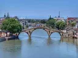 Spent a few days in Zhejiang, first went to Shuanglin Ancient Town to see the three bridges of Shuanglin: Wanyuan Bridge, Huacheng Bridge, and Wankui Bridge. These three bridges were all built during the Ming and Qing dynasties, spanning north-south across the Jiaxing-Huzhou waterway, and are very close to each other, forming a unique landscape. During the tour of Shuanglin Ancient Town, I had a bowl of local specialty eel and shrimp mixed noodles at A Dong Noodle House in the ancient town for lunch. It was sweet and delicious, leaving a lasting impression. The food was also great.