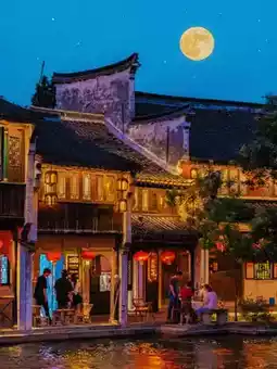 The most photogenic place in the entire ancient town, from the blues of early morning to dusk, the reflection of the ancient town against the calm lake, looks like an ink painting
