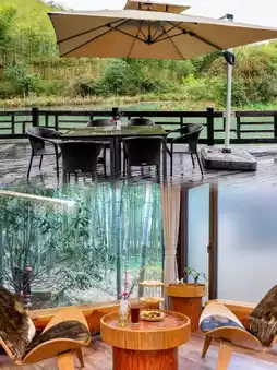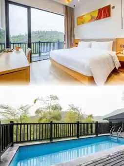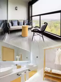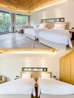 The room design is super stylish, and every detail exudes warmth and romance. Lying on the bed, you can have eye contact with the giraffes through the panoramic floor-to-ceiling windows, as if you are living in a fairy tale world. There are welcome fruits, a free mini bar, TOTO bathroom facilities, guaranteed quality, fast internet speed, and children's toothbrushes.