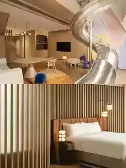 [RedHeart] The hotel has 21 floors, all connected by five elevators in the center of the arrival floor. Combined with the overall golden tone and lighting, it has a cyberpunk feel. The overall space of the guest room is quite large, and the decoration is very modern. I quite like the lamps inside. The king room has a curved sofa, while the executive twin room does not. However, it has a larger round bathtub. In addition, the executive room is equipped with Voss water. There seems to be no other difference.