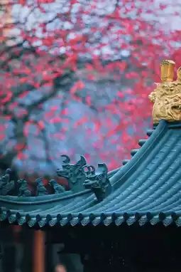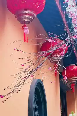 Suddenly, the chanting of Buddhist scriptures rings out, startling the plum blossoms under the eaves, causing them to flutter down like verses waiting to be written on the tiles. Those who come to admire the blossoms are seeking a touch of poetic inspiration amidst the mundane world, while those who linger can no longer distinguish whether they have come to find plum blossoms or to accept an invitation from the thousand-year-old misty rain that has condensed into the vermilion red on the branches.