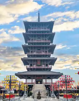 This newly built ancient town offers stunning scenery, especially at night when the lights create a breathtaking view.
