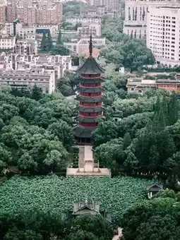 One of Huzhou's Three Wonders - pagoda within pagoda, with a pond full of blooming lotus flowers