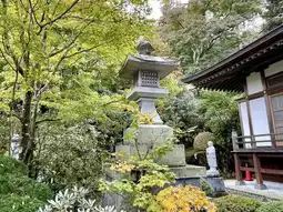 The maple leaves had just begun to turn during our visit, painting the temple grounds with soft hints of red and orange. Scattered around the area are small Jizo statues (guardian deities), creating a serene and slightly magical atmosphere as they peek out from beneath the trees.