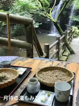 A restaurant where you can enjoy stone-ground soba noodles and home-roasted coffee while watching the waterfall in the nature of Okukuji, located in Daigo-machi
