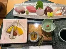 Both dinner and breakfast are served in a semi-private room, so you can enjoy your food in a relaxed manner. The raw fish was very fresh, had no fishy smell at all and was delicious. Also, deep-fried satsuma (fish cakes) are great. . The sweet potato soju is delicious with the freshly fried fish cakes.
