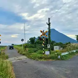 The distant view of Mount Kaimon, combined with the railway tracks and the southernmost marker, is very beautiful.
