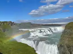 Nearby, Gullfoss captivates with its majestic waterfalls, where glacial waters tumble dramatically into a deep canyon. The sound of the rushing water and the mist rising from the falls create a powerful, almost magical atmosphere. Well maintained paths and viewing platforms make it easy to enjoy the scenery safely while capturing incredible photographs. Together, Geysir and Gullfoss showcase the raw beauty and dynamic energy of Icelandic nature, leaving visitors in awe of the landscape’s force and elegance.