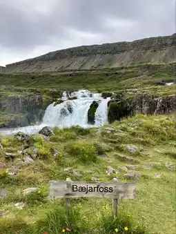 Dynjandi Waterfall is one of the most wonderful and iconic waterfalls in Iceland, located deep in the peaceful Westfjords. Its name means “thundering,” and you can easily understand why when you hear the roaring sound of water rushing down from the cliffs. Standing about 100 meters tall, Dynjandi looks like a giant white bridal veil spreading over the dark rocks, sparkling beautifully in the sunlight. The hike up to the main fall takes you past several smaller waterfalls, each with its own charm, making the journey just as beautiful as the destination. Surrounded by pure Icelandic nature, with no city noise or crowds, this waterfall gives visitors a sense of peace and wonder. Dynjandi is not just a sight to see — it’s a place to feel nature’s power and beauty, a perfect symbol of the wild heart of Iceland’s Westfjords.