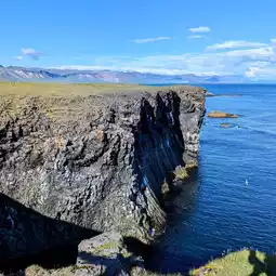 The village itself is quaint, with colorful houses and a relaxed, welcoming atmosphere. Nearby, you can explore lava fields and small coves, adding variety to your visit. Even though it is small, Arnarstapi feels alive with natural energy and charm. It is a must see on the Snæfellsnes Peninsula, offering a unique combination of rugged landscapes and Icelandic coastal serenity.