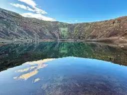 The calm water and colorful rock formations make it perfect for photos or a quiet moment to enjoy the scenery. Though the visit is short, Kerid Crater leaves a lasting impression as a simple yet stunning glimpse into Iceland’s volcanic heart.