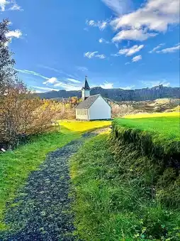 The road to Thingvellir National Park and Úlfljótsvatnskirkja in Iceland is a peaceful and scenic drive through rolling hills, lakes, and open countryside. As you leave the city behind, the air feels fresher, and the landscape turns wild and beautiful. The road winds past volcanic fields, patches of green moss, and calm waters that mirror the sky. On the way, you pass Úlfljótsvatn Lake, where the white Úlfljótsvatnskirkja Church stands quietly by the shore—a lovely sight with mountains in the background. The church’s simple beauty and reflection in the water make it a favorite stop for photos. Continuing toward Thingvellir National Park, the scenery grows even more dramatic, with deep valleys and distant glaciers. It’s a journey that feels peaceful yet full of wonder, showing the true heart of Iceland’s nature.
