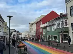 Rainbow Street, or Skólavörðustígur, in Reykjavík is one of Iceland’s most colorful and joyful spots. Stretching up toward the iconic Hallgrímskirkja Church, the street is painted in bright rainbow colors, symbolizing love, diversity, and unity. Originally created to celebrate Pride and support the LGBTQ+ community, it has become a cheerful symbol of Reykjavík’s open-minded and creative spirit. Lined with cozy cafés, boutiques, and art shops, Rainbow Street invites visitors to stroll, take photos, and enjoy the lively atmosphere. The contrast of the vivid street against the calm gray tones of Iceland’s buildings and sky makes it especially eye-catching. Whether you visit on a sunny day or under soft northern light, the colors seem to glow with happiness and hope. Rainbow Street perfectly represents modern Iceland—colorful, welcoming, and full of heart.