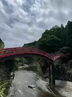 A distinctive double-bridge that stands out against the greenery, and walking while listening to the babbling of the river is relaxing.