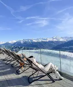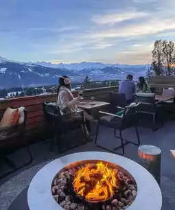 - La Terrasse of @cransambassador : Most beautiful terrace in town with stunning views of the Swiss alps. At sunsets the atmosphere is magical.