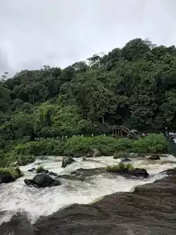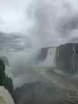 Salto Santa Maria in Brazil's Iguazu National Park is a scenic walking trail that offers panoramic views of the Devil's Throat, the highlight of the hike, as well as various surrounding waterfalls. The trail, consisting of decks, allows visitors to see the waterfalls from both the side and front. Be prepared to get completely soaked as you cross the bridge with water splashing from the falls. It is recommended to wear a raincoat or bring an umbrella for the hike.