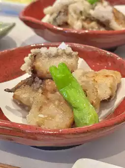 The deep-fried mackerel has a strong fatty mackerel flavor and goes perfectly with the crispy batter!