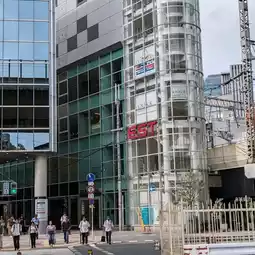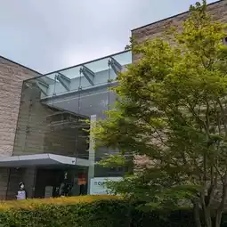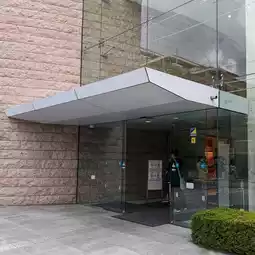 Finally, I arrive at the entrance to the ``Cup Noodles Museum''...a very large, stylish glass building.