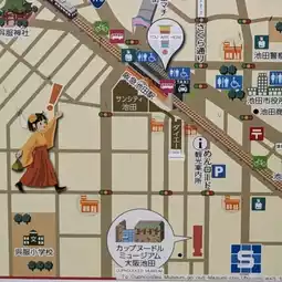 When you leave the ticket gate, there is a detailed illustrated map, and the station guide kindly showed you how to get to the Cup Noodle Museum with hand-drawn illustrations.