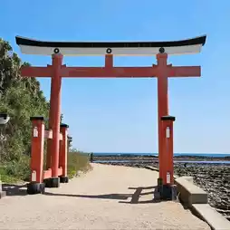 The shrine is located in the center of Aoshima, where the entire island is said to be the shrine grounds, and you can visit by crossing the Yayoi Bridge that spans the island.