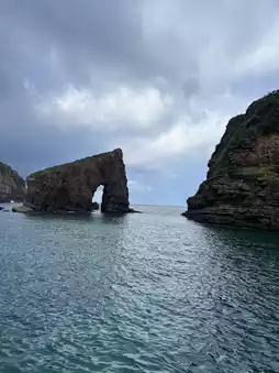 Hop aboard the pleasure boat that departs from Katsumoto Port and enjoy a tour of the Tatsunoshima & Hebigatani area!