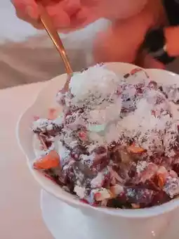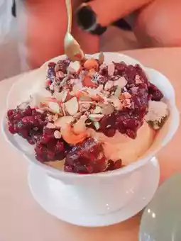 the red beans, rice cakes, and nuts are served separately and you can eat them on top!