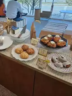 The exterior resembles a complex shopping mall, which might be confusing for first-time visitors. It’s recommended to check the entrance sign for guidance. Upon entering, the 2nd-floor lounge exudes a hotel-like ambiance, with a variety of bread displayed. Salt bread and other bakery items are particularly popular, making it fun to choose desserts. You can enjoy drinks and desserts in a relaxed atmosphere.