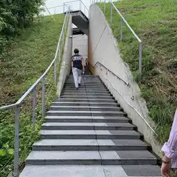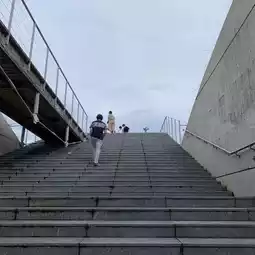 The signs would then direct visitors to walk up the viewing deck which is on the left side. The walk is about 5 minutes up a few flights of stairs that looked almost like a contemporary art museum. At this point, we saw many visitors simply posing on the staircase instead of going to the top for the scenic view. why? because it just looked so cool!