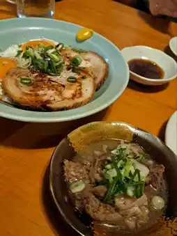 The black ramen is delicious, of course, but the fried chicken is superb! It was crispy on the outside and juicy on the inside and really delicious! The beef tendon stew was also perfectly seasoned and went well with beer 🍺