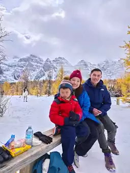 Larch Valley is a popular hiking spot during the fall foliage season at Moraine Lake. The beautiful mountain scenery contrasts with the yellow larch trees, creating a stunning atmosphere. The hike is easy, starting from the lake and covering a distance of about 5 kilometers. The trail is relatively easy, but be cautious as it can be slippery with snow at times. It's advisable to bring snow spikes for better traction. Once you reach the top, the breathtaking views are perfect for photography. Bring food for a picnic so you can relax and enjoy the scenery while eating, as there are no food vendors at the top. Make sure to take care of any personal needs before hiking up, as there are no restrooms available. It's best to book an early morning bus to have enough time to hike up and return without missing the last bus. Booking the bus can be a bit challenging as there are specific times when reservations open, so it's best to book early. Private vehicles are not allowed at the lake; you must take the bus to get there.