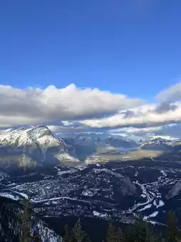 On clear days, you can enjoy panoramic views of Banff town, Bow River, and the surrounding Rocky Mountains ✨.
