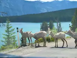 1pm Lake Minnewanka (Figure 3, book boat tickets in advance) → Two Jack Lake (Figure 5) & smaller lakes along the way → Banff Viewpoint (Figure 6, frequent bighorn sheep sightings Figure 4)