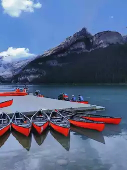 1️⃣ Mount Victoria: On one side of the lake stands the majestic Mount Victoria, with its snow-capped peaks year-round, creating a picturesque reflection on the lake.