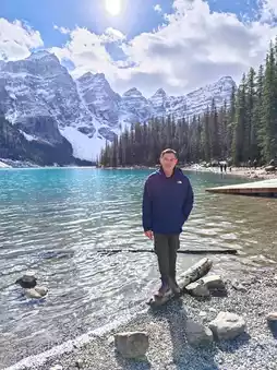 Moraine Lake, often hailed as the most beautiful lake in Banff National Park, is a stunning emerald-green lake surrounded by majestic mountain peaks. This creates a breathtakingly picturesque view. To visit Moraine Lake, you must use a shuttle bus, as private vehicles are not allowed. Visitors need to book a tour or reserve a spot on the park's shuttle bus in advance. It's highly recommended to plan ahead and secure your reservation early, as buses can fill up quickly on your desired travel date. Once you arrive, don't miss the chance to hike up to the viewpoint. It's a short climb that offers a spectacular elevated view of the lake, making it a popular spot for photography. If you're visiting Banff National Park, Moraine Lake is an absolute must-see destination.